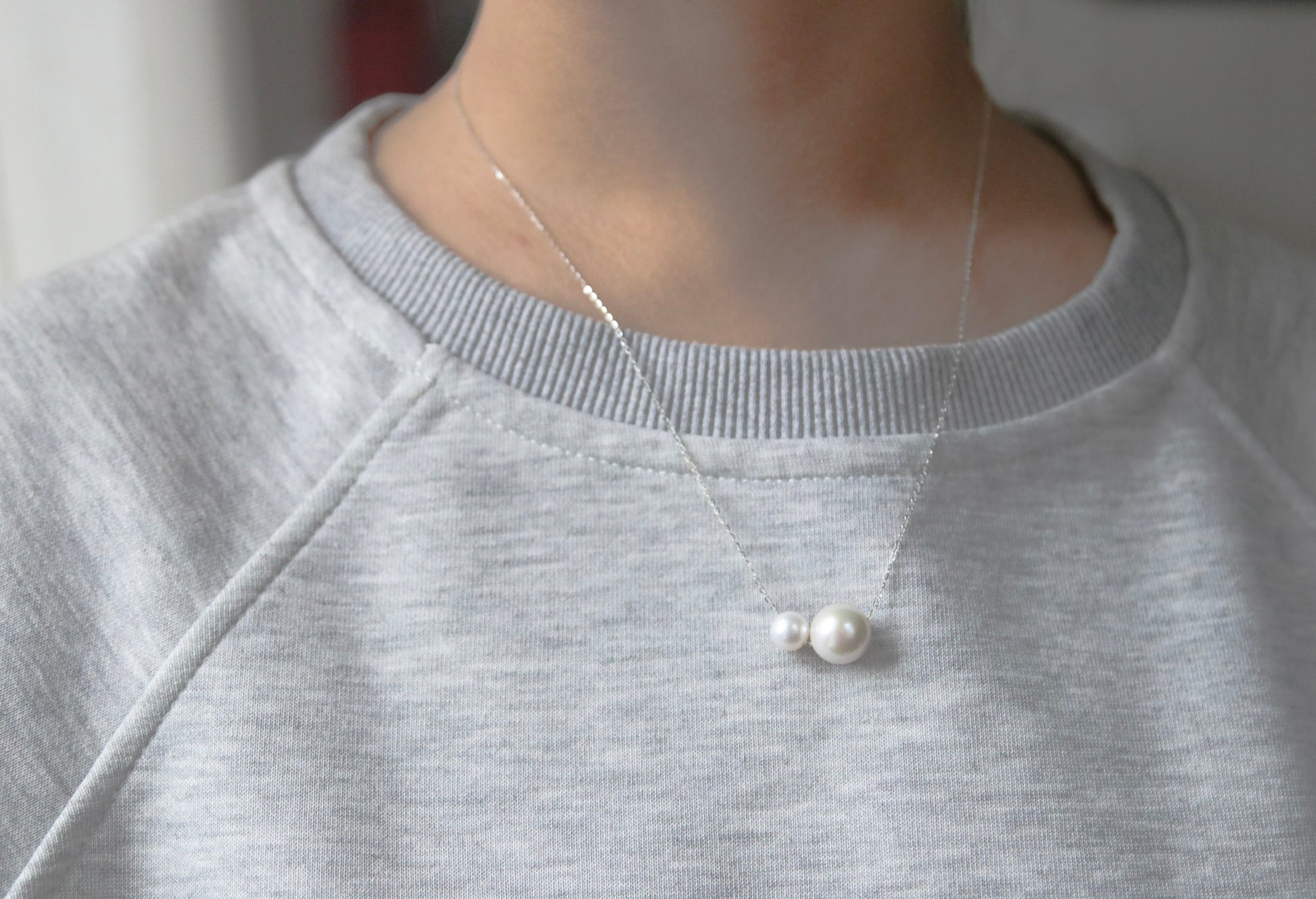 Diese Duo-Perlenkette besteht aus zwei hochwertigen Perlen mit glatter Oberfläche, die in einem sanften, zarten Glanz schimmern – eine perfekte Balance zwischen Schlichtheit und Eleganz.