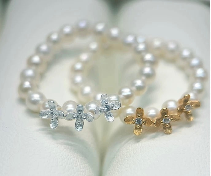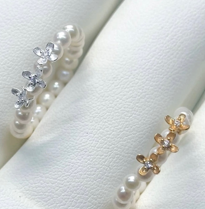 Ein wirklich bezauberndes Schmuckstück – dieser Perlenring ist mit kleinen Blüten verziert, die ihn zugleich lieblich und faszinierend wirken lassen. Elegant und verspielt zugleich verleiht er jeder Bewegung einen frischen Glanz.