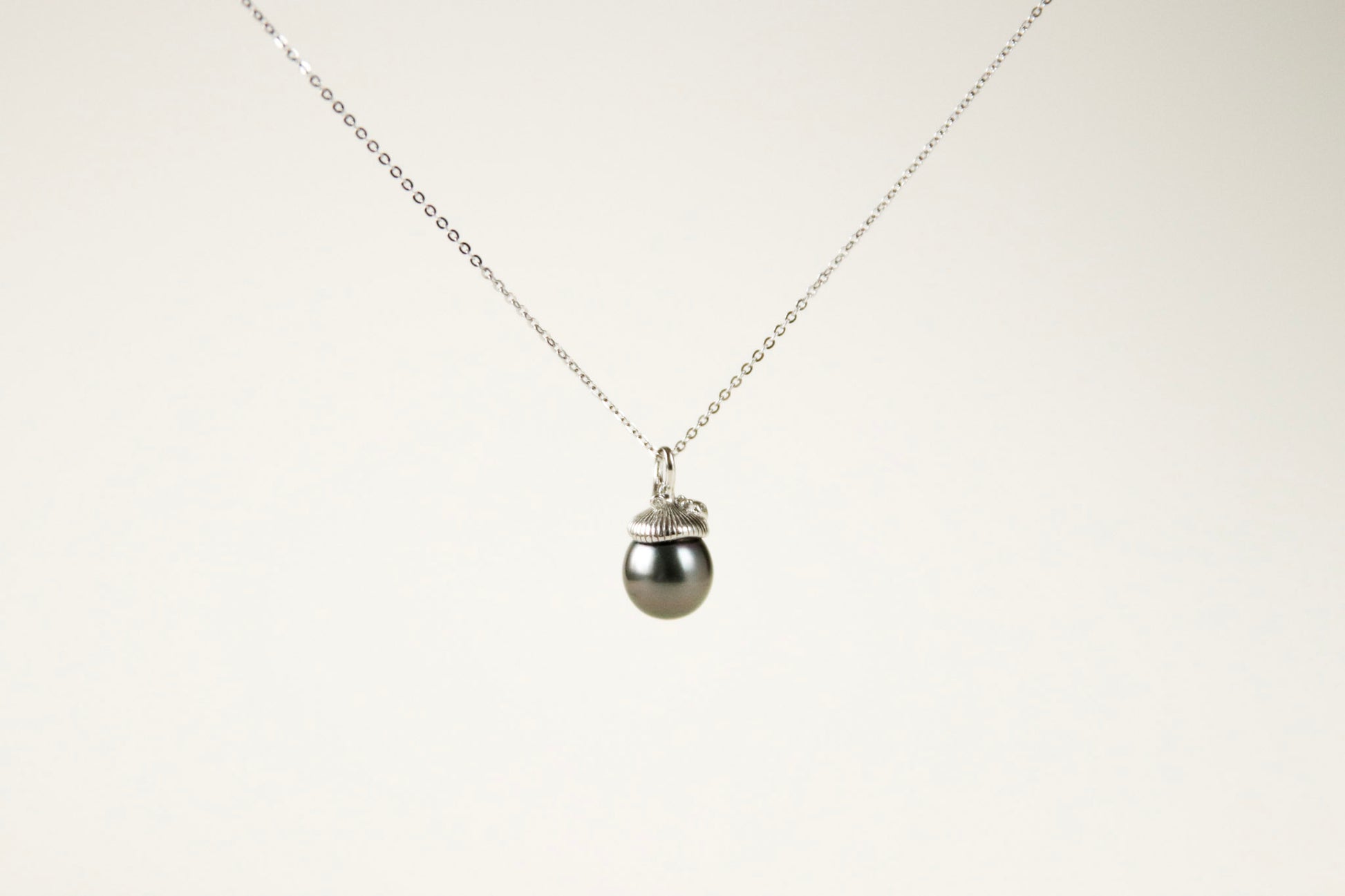 Gefertigt aus einer dunkelgrünen Tahiti-Meerwasserperle, kombiniert der Anhänger in Form eines kleinen Eichels mit einer feinen 925er Sterlingsilber Kette. Eine verspielte und charmante Halskette – das perfekte Schmuckstück, um deine Herbst- und Winteroutfits zu ergänzen. Sie passt wunderbar zu deinem Alltagslook ebenso wie zu festlichen Anlässen. Ein einzigartiges Geschenk, das garantiert für leuchtende Augen sorgt. Ein Gescheink für sie und ihn.