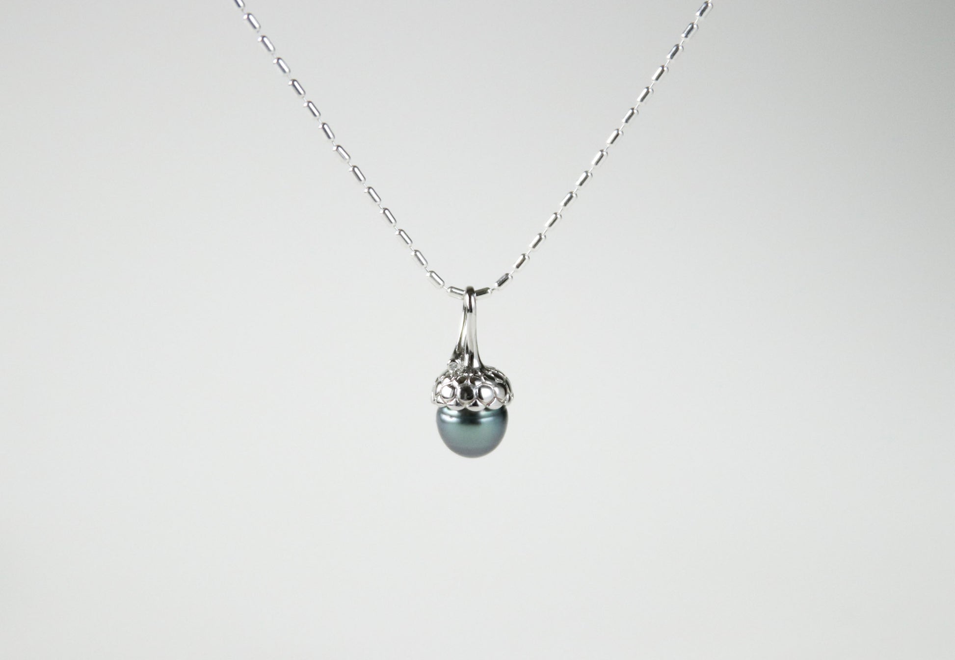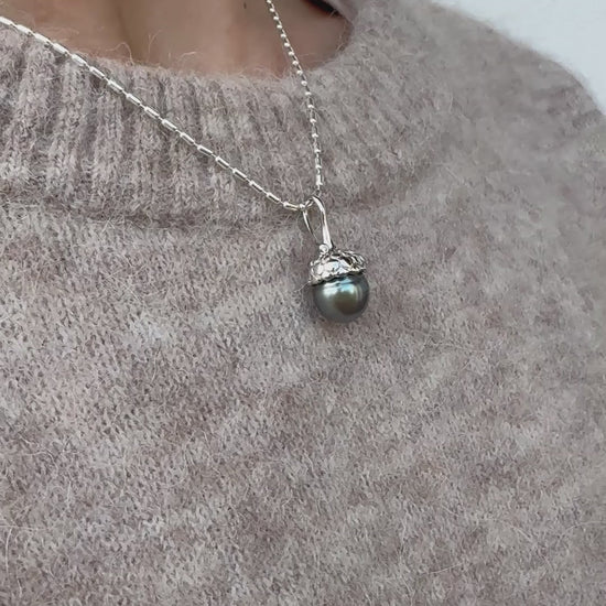 Echte Tahiti Perle Halskette Anhänger Tannenzapfen mit Sterling Silberkette